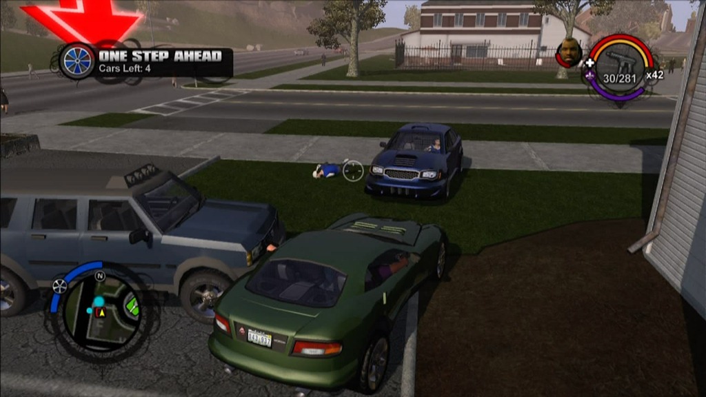 The combat against rival gangs and law enforcement is perhaps the most obvious area where Saints Row shines over the GTA games. Instead of using an awkward lock-on system to target your enemies (or a random grandma that happens to be walking by), you have standard shooter controls and simply aim with the right analog stick. Combine this with proper ragdoll physics, and you have shooting mechanics that feel extremely satisfying compared to what we had seen in the previous generation. You also have regenerating health and can carry up to four healing items, making the difficulty fairly forgiving aside from a few frustrating spikes in later missions.