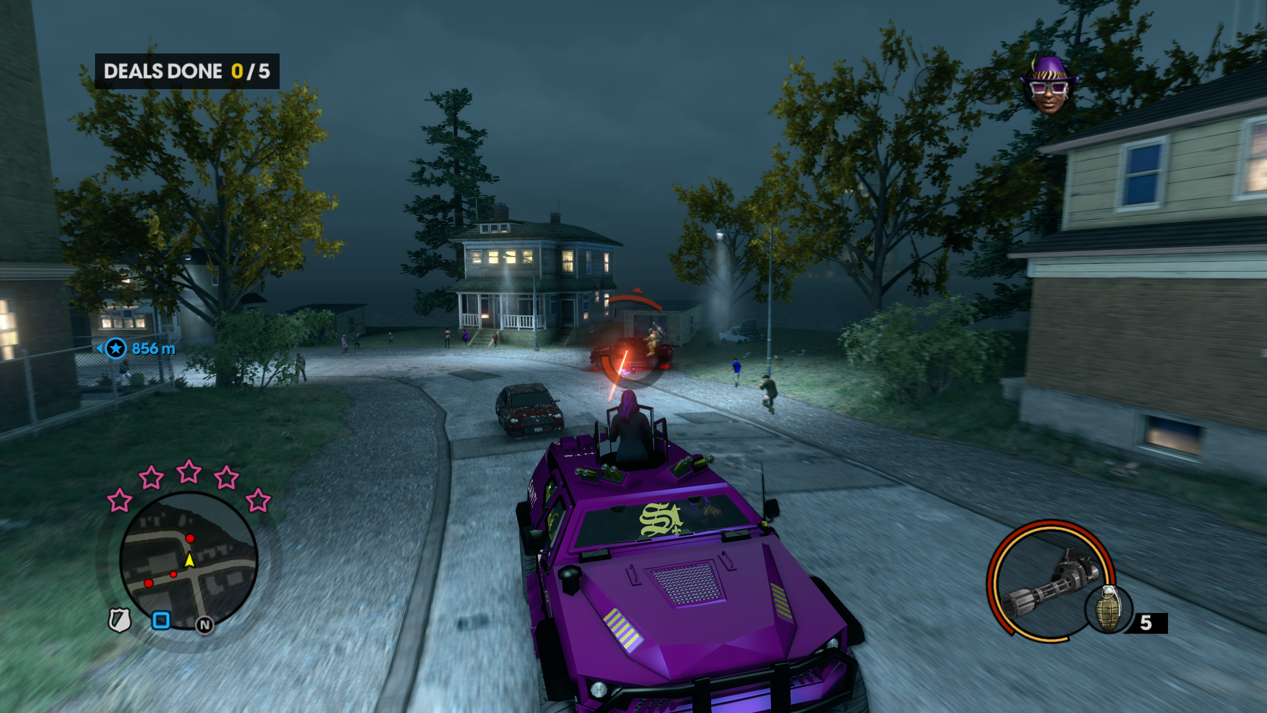 The improved game engine is quite nice and looks more “next-gen” than the first two games. Shooting is now quite a bit smoother than before, as you can fine aim with the left trigger instead of having to click the right stick to zoom in. Unfortunately, the enemies are more bullet-spongy than before and don’t react to shots in as satisfying a manner as they did in the previous games. What’s even the point of a shotgun if you can’t blast a fool across the room? At least you can upgrade the weapons now. Melee attacks are easier too, especially when you hold the sprint button (now renamed the Awesome button), which lets you do all sorts of silly wrestling moves as well as speed up carjackings by smashing through the front windows.
