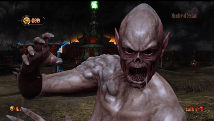 The Krypt is really a bit of a slog and far too expansive for its own good. There’s so much crap in there that you may want to look at a walkthrough to unlock the worthwhile stuff. Of course, it wouldn’t be Mortal Kombat if they didn’t throw in some surprises — occasionally, a hideous monster pops up in your face and screams bloody murder at you like an interflash prank from 2001. Thanks for that, lads. Really appreciate it. The monster herself (yes, that’s a lady) isn’t that scary and pretty much just looks like Eddie from Iron Maiden’s album covers, but the Krypt is annoying enough without jump scares.