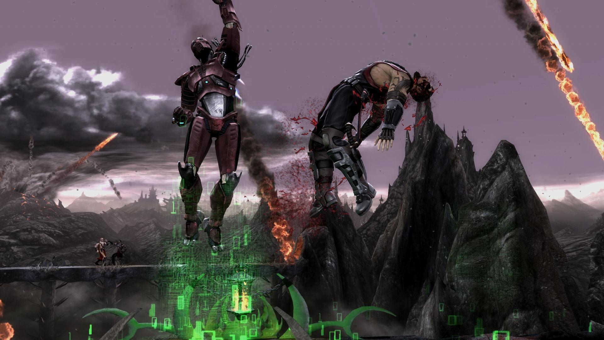 Nearly all of the fighters in Mortal Kombat come from the 2D MK games, with every non-boss character except Khameleon and Chameleon showing up. The only returning characters from the later games are Quan Chi (first fighting game appearance in MK4) and Kenshi (introduced in Deadly Alliance) who shows up as a DLC character. There are a couple of new faces, though, and many of the old guard have had their biographies updated. Kabal, for instance, is now a former member of the Black Dragon and works as Stryker’s partner in the NYPD before getting his face mangled by Kahn’s goons, and Smoke now hails from the Czech Republic. Cyrax and Sektor appear in their human forms for the first time ever. But yeah, about those new guys…