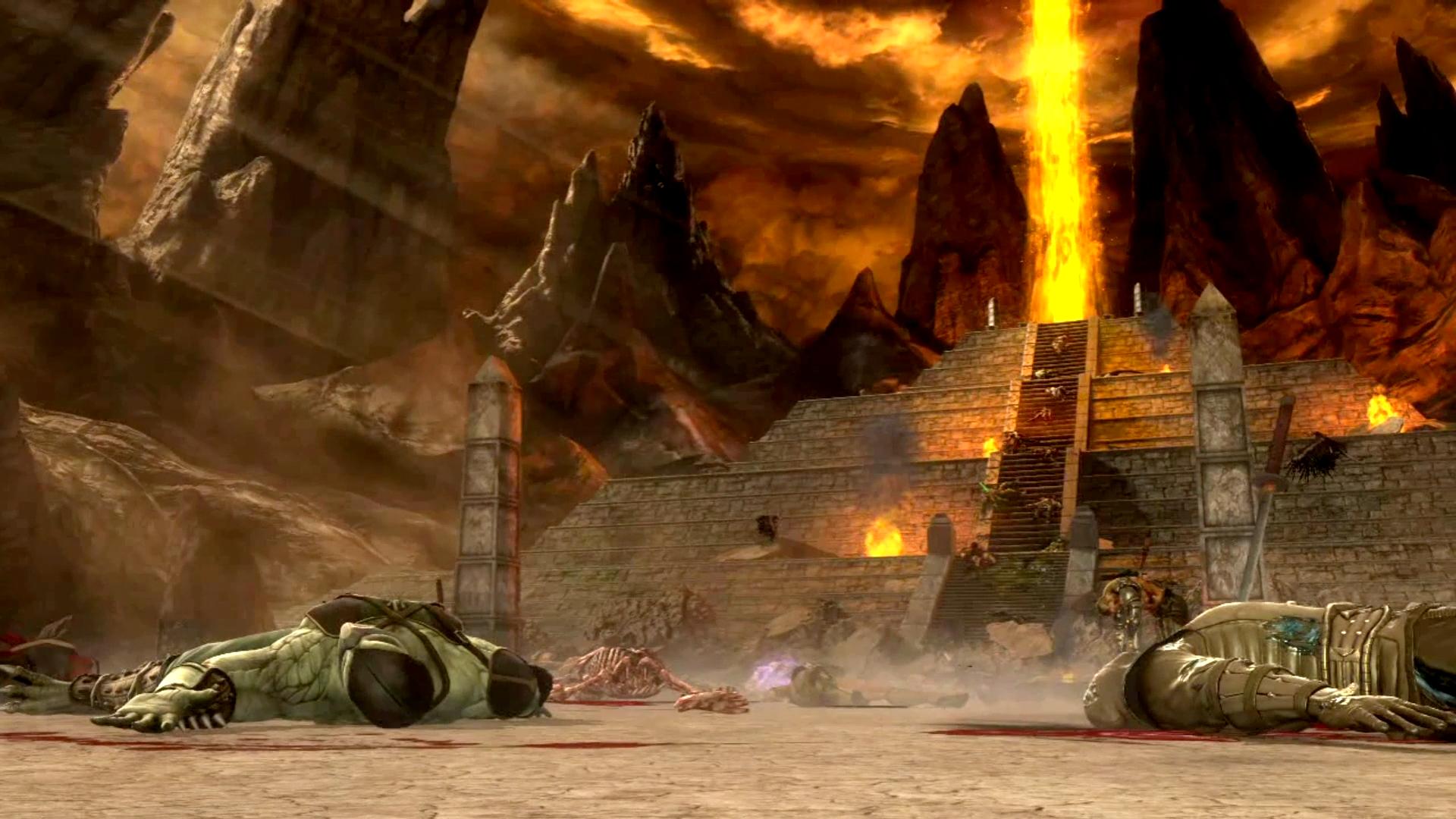 Shao Kahn has defeated Blaze and gained immense power, and now he’s beating the shit out of Raiden while gloating in his usual manner. Knowing that he has no chance to stop Kahn from bringing about Armageddon, Raiden gathers the pieces of his shattered amulet and puts them back together in an attempt to send a message to his past self. Just before Shao Kahn’s hammer meets his face for the last time, Raiden manages to send out three words: