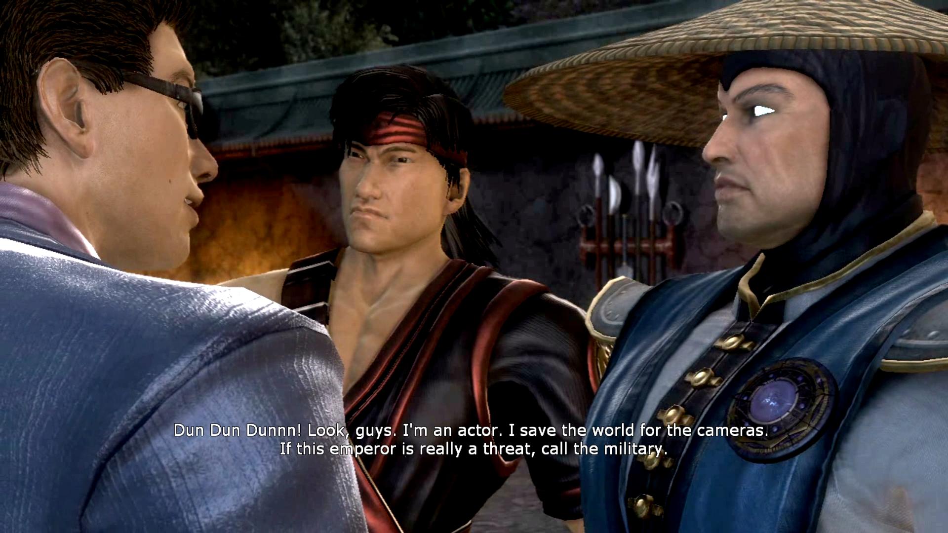 The actual storyline begins shortly after the intro of Mortal Kombat: Armageddon. The clusterfuck of a battle between the forces of light and darkness is over, and nearly everyone involved has contracted an acute case of horrible violent death. The only ones still standing are Raiden and Shao Kahn, although things are not going well for the thunder god.