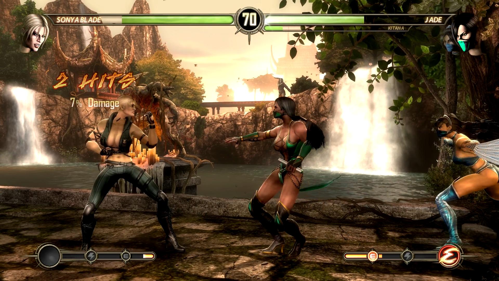 The control layout is more or less the same as MK vs. DC, with the front and back kick and punch system still in place (Personally, I like to change the buttons to match the layout of Mortal Kombat II). Obviously, all the ridiculous gimmicks like Klose Kombat have been axed and the fighting system is far smoother than MK vs. DC. The right trigger blocks, as usual, and the left trigger is used to switch stances.