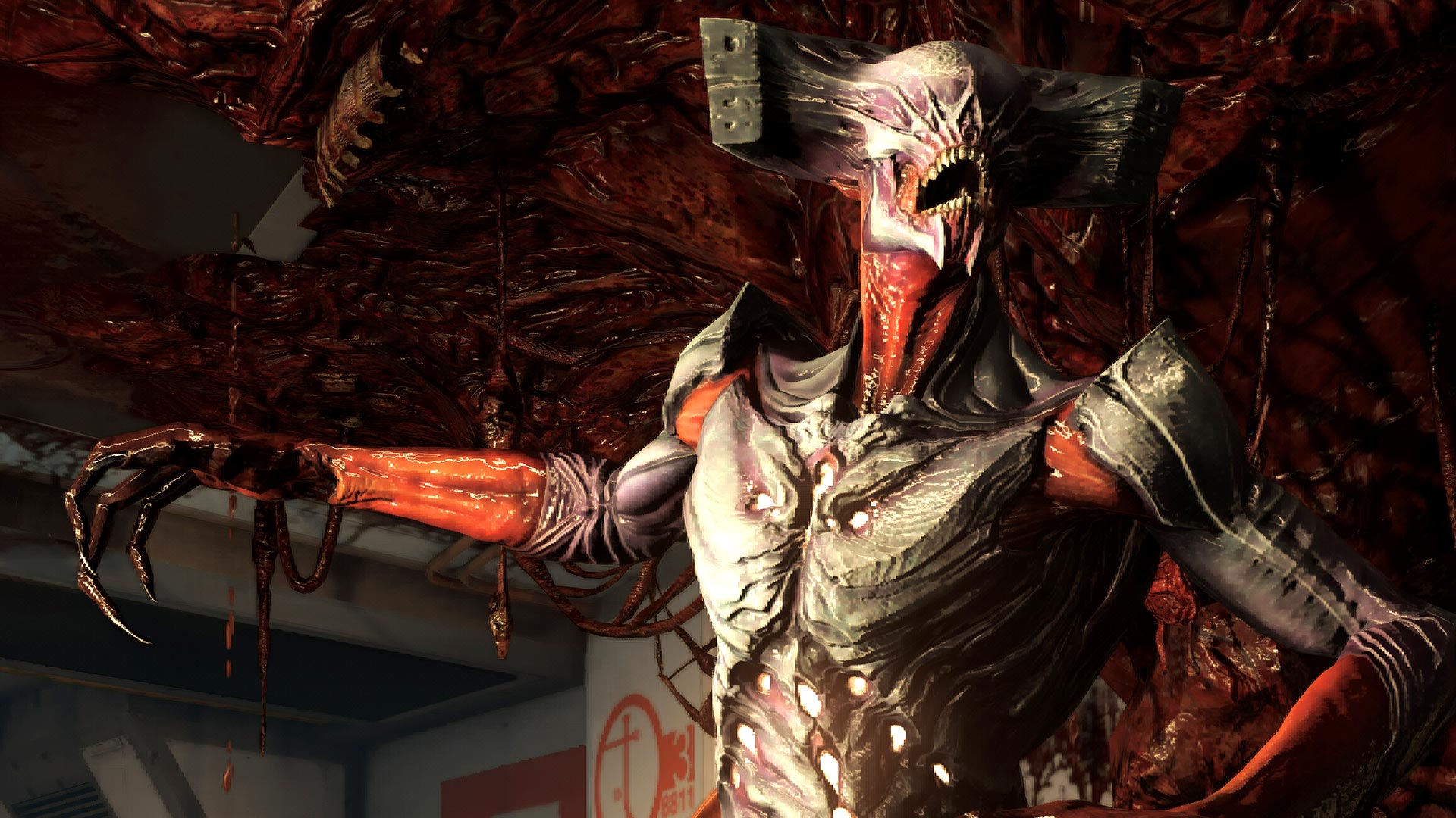 The game starts off at a United Aerospace Corporation facility on Mars, where something has gone ever so slightly wrong and a demonic invasion is in progress as a result (as a computer screen in the starting room helpfully indicates — you also hear announcements on the PA saying “Demonic presence at unsafe levels”). You, as the space marine who may or may not be the original Doomguy from the old games, wake up from what appears to be a block of carbonite you’ve been encased in, kill a couple of zombiemen (known as Possessed in this iteration) with a nearby pistol and grab your armor from what is clearly a shrine of some sort. Some jerk in a robot suit who sounds like Optimus Prime contacts you and starts blathering on about a mutually beneficial arrangement, but Doomguy isn’t having any of that and literally throws the plot (or at least the computer console the plot guy is speaking through) into the corner.