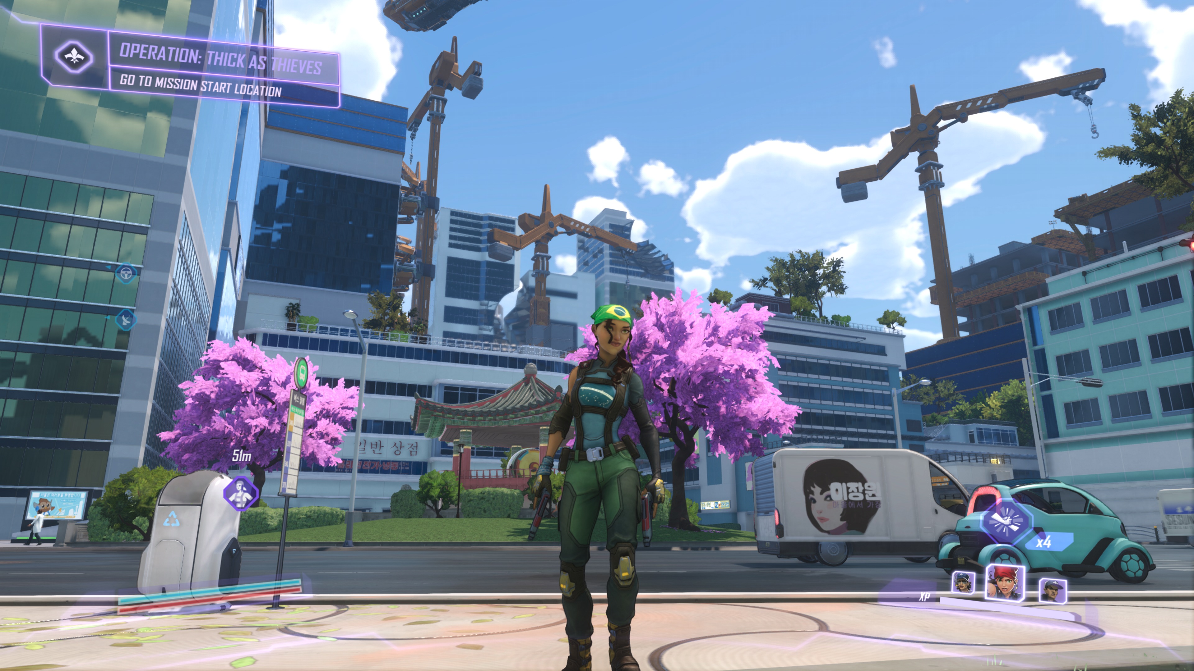 Despite launching as a full-priced game, Agents of Mayhem has the distinct feel of a budget title to it. The graphics look a bit last-gen (although the use of color and lighting help make the game look less bland — Seoul, depicted here as a city of cherry trees and neon lights, can sometimes look fantastic especially on an HDR setup) but the game still runs rather poorly even on the Xbox One X, the gameplay is repetitive, and there is a noticeable lack of production values. There’s no licensed music (well, technically there is, but it’s all production library stuff), so when you’re driving around Seoul you won’t be singing along to any 80s hit songs, having to make do with generic electronic music instead.