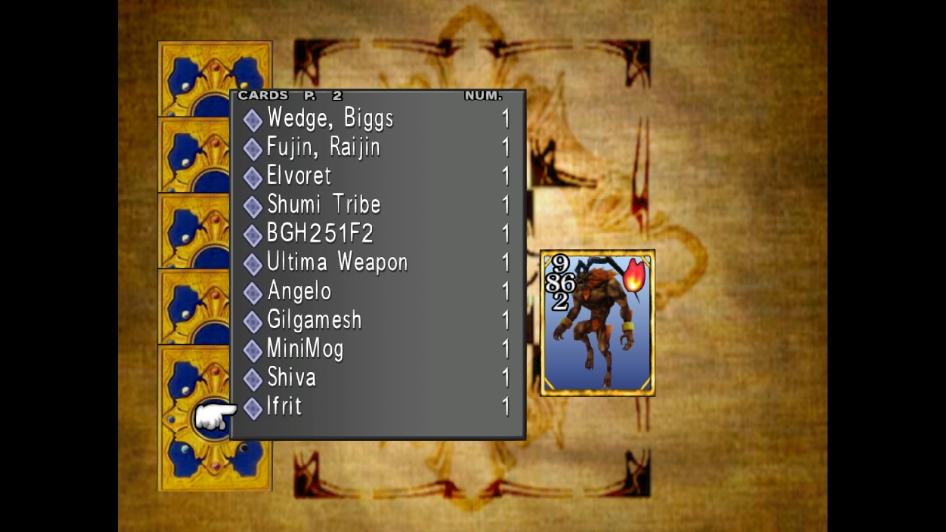When you do figure out the Junction system, you are well on your way to breaking Final Fantasy VIII over your knee. This process is made immensely easier by the Triple Triad card game, because any cards you win can be turned into items by using the Card Mod ability that can be learned by one of Squall’s initial GFs, and those items can then be refined into spells. You can get some very, very strong cards — and consequently some very, very strong magic such as Tornado — basically as soon as you start the game, and if you want to boost your HP to the thousands you don’t even need to play any cards because you can turn the purchasable Tent item into Curaga spells!