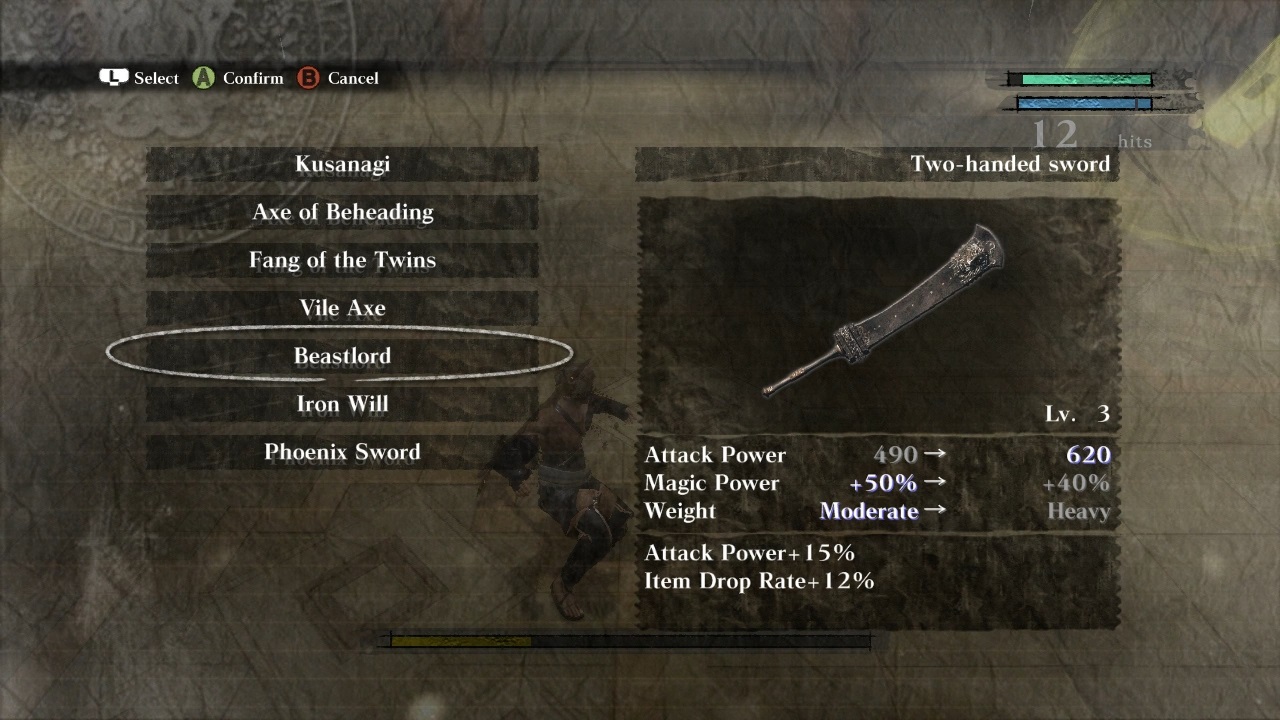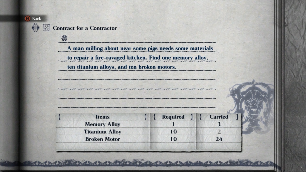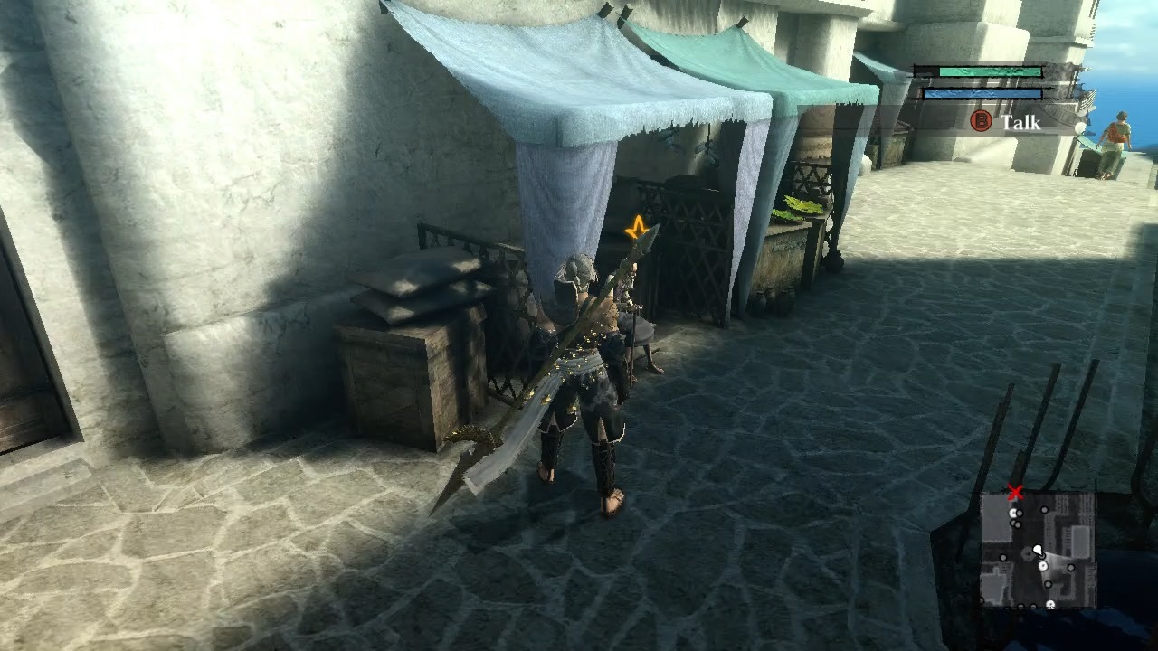 In the first half of the game, Nier is only able to use one-handed swords, but as the game progresses he gains access to the aforementioned two-handers and spears. As is tradition in these games, there are enough weapons in NieR to mount a small-scale armed coup. Most are either bought at blacksmiths or found in dungeons, but a few can only be obtained as sidequest rewards. Most weapons in the game are various degrees of garbage, but you once again need all of them to access the true ending.