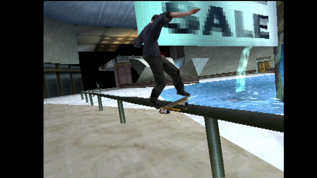 The PlayStation version is the original game created by Neversoft, so if you want the most authentic realization of the developers’ vision, this is the version to play. And it does play very well to this day, with a few caveats. First off, the frame rate is rather unstable and dips well into the 20s more often than I’d like. This was not a massive issue back in the day because most 3D games at the time suffered from performance issues to some extent, but Pro Skater can definitely feel a bit chunky nowadays.