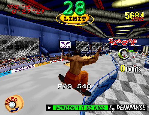 Early on, the game that would eventually become Tony Hawk’s Pro Skater focused on downhill courses in the style of Top Skater. At the end of the course would be a skate park, where the player could spend time in and perform tricks at their leisure. It eventually became clear that messing around in the skate park and pulling off tricks was more fun than the downhill gameplay, so the development pivoted away from the Top Skater-inspired formula and focused on the trick portion.