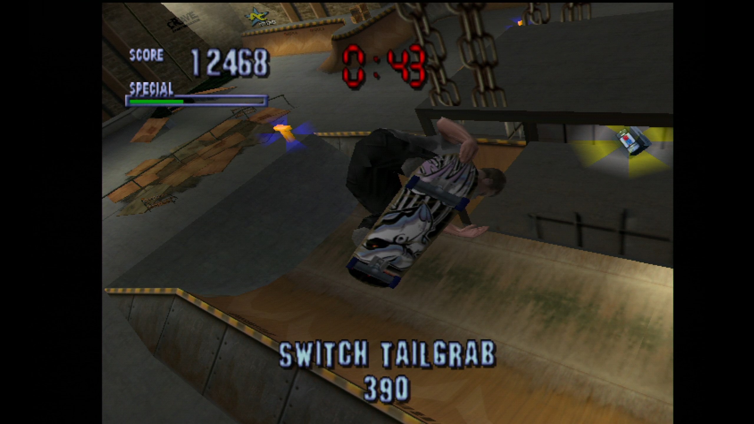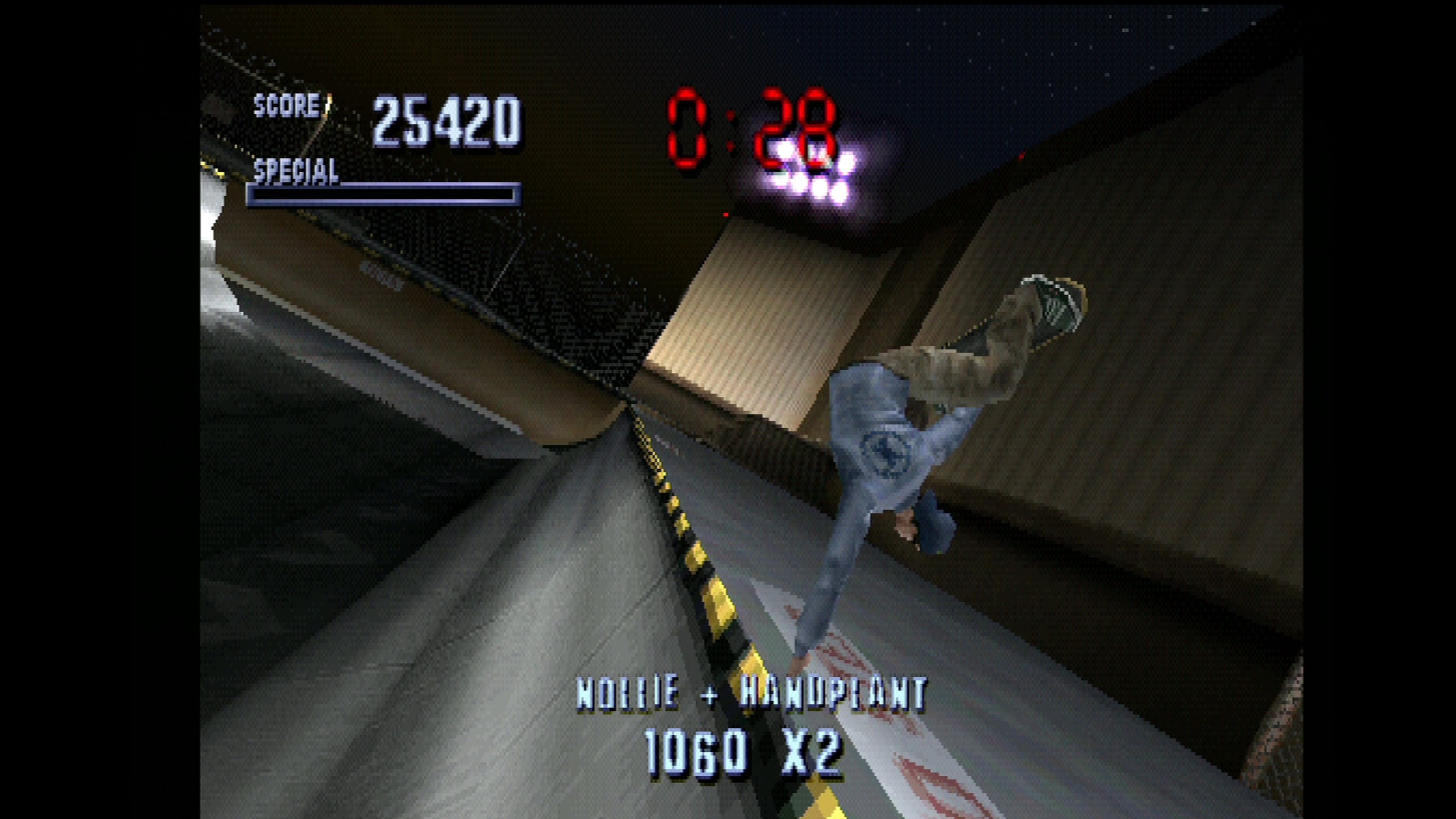 The move itself was implemented very late in development (since Hawk hadn’t successfully performed it until three months before launch), but it had to be included because its absence would simply have been unacceptable. Appropriately enough, the 900 is the most difficult move in the game to land as you need a significant amount of air to avoid a massive faceplant, but also worth the most points.