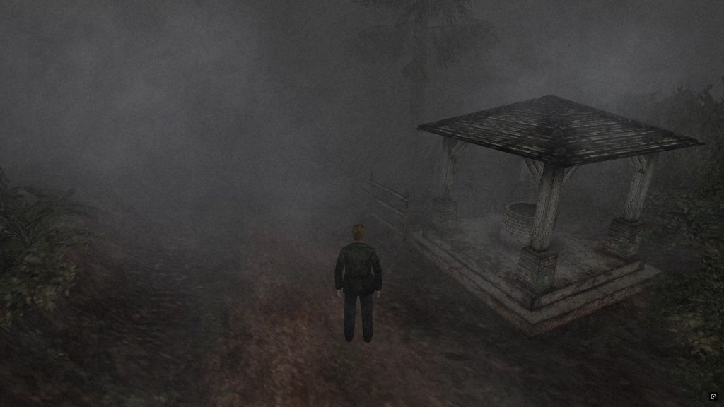 This is not what the fog is supposed to look like. It actually doesn’t look too offensive in this particular shot but in motion, it just looks like there’s a grey wall in front of James, with a clear line near the middle of the screen. Screenshot from the Xbox 360 version, image credit: supergreatfriend on YouTube