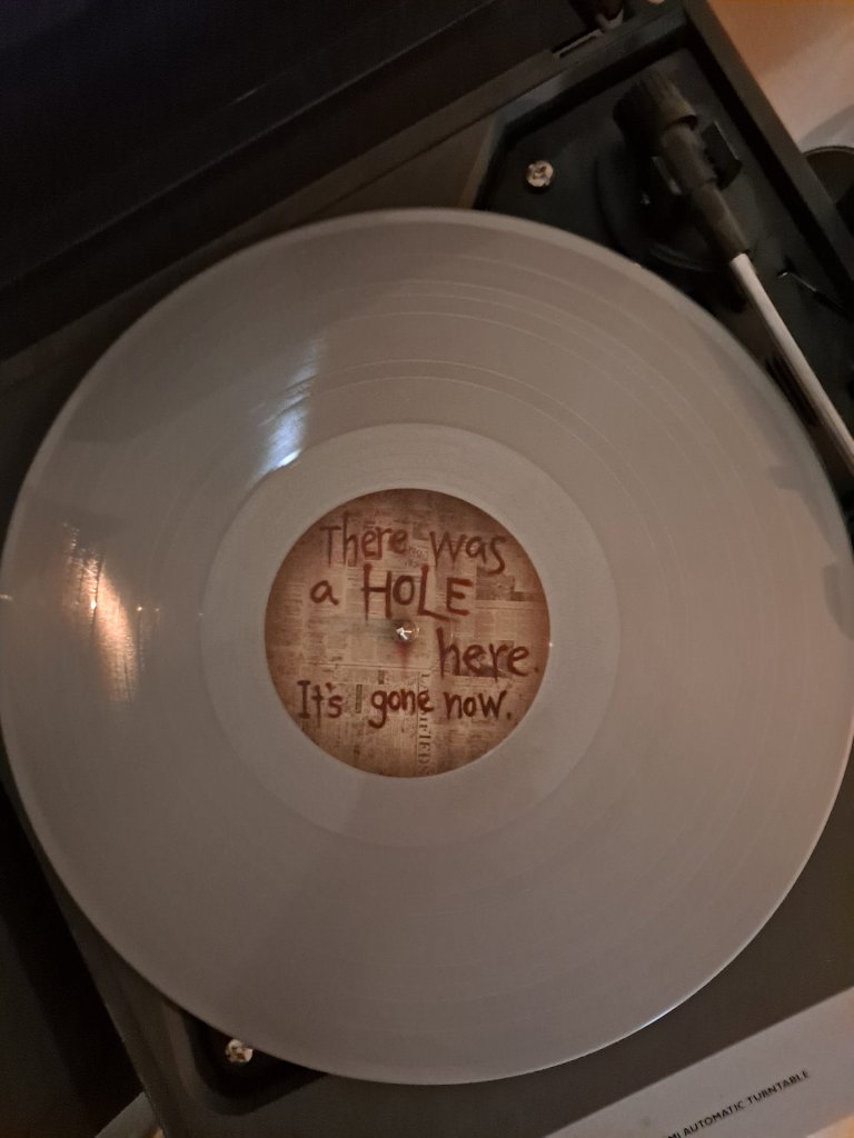 You know, this graphic on the vinyl soundtrack disc would be more amusing if the hole wasn’t actually too tight, making the disc unplayable on my turntable without reinserting it a million times and slightly damaging it in the process. Maybe my turntable just has a particularly girthy rod.
