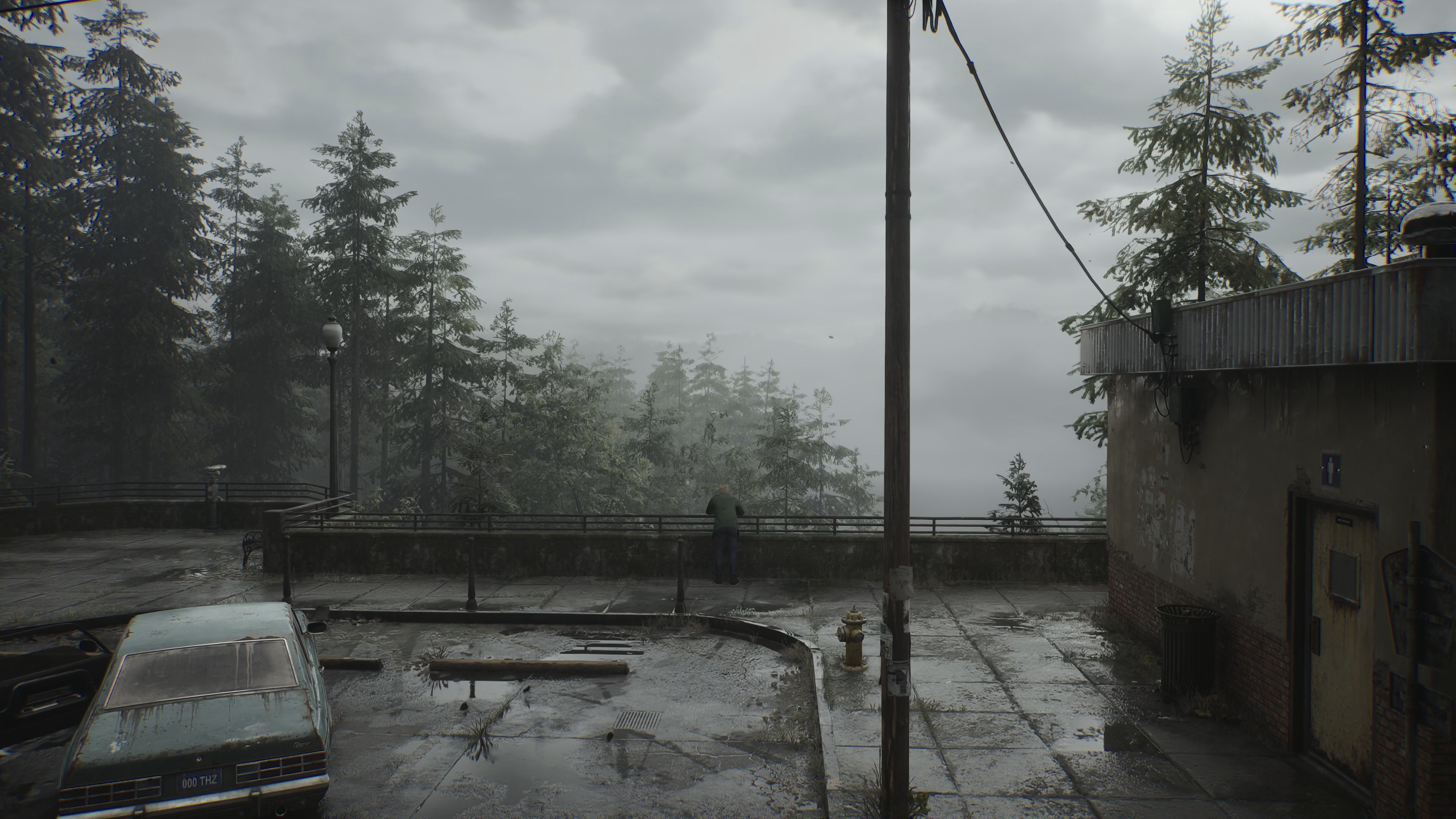 This is not what the fog is supposed to look like. It actually doesn’t look too offensive in this particular shot but in motion, it just looks like there’s a grey wall in front of James, with a clear line near the middle of the screen. Screenshot from the Xbox 360 version, image credit: supergreatfriend on YouTube
