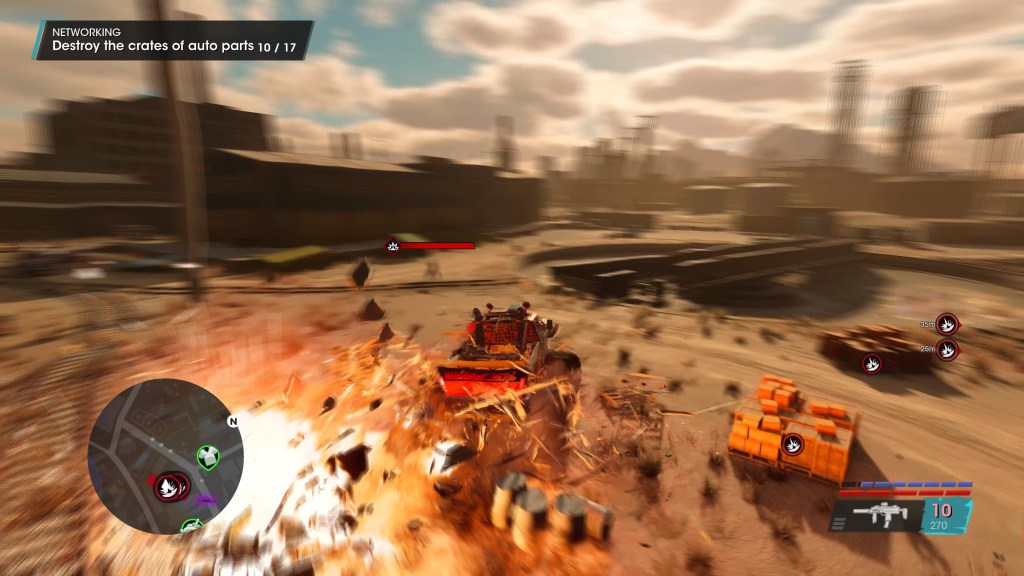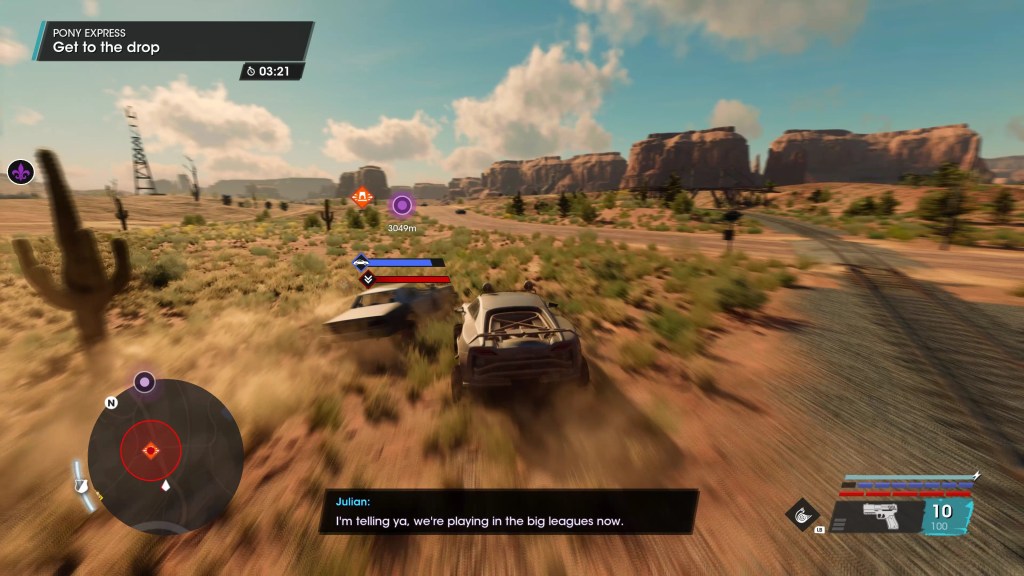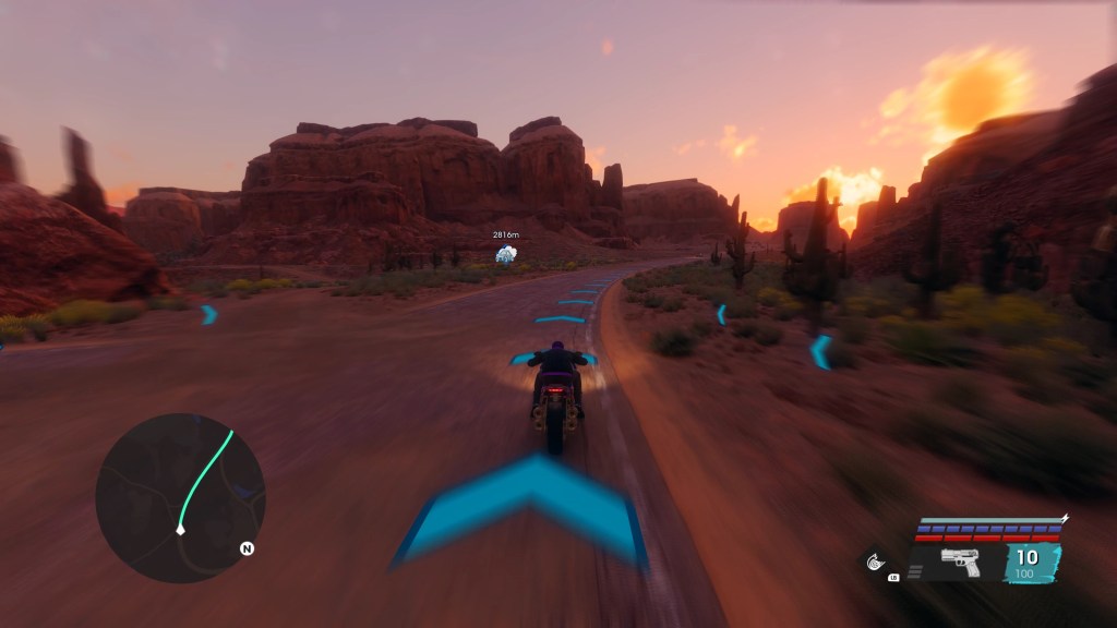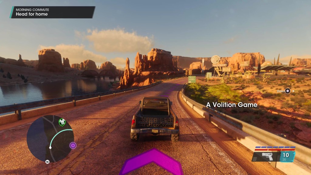The PC version, originally an Epic exclusive but later receiving a Steam release as well (just before Volition got shuttered), is… fine, for the most part. It scales beyond the PS5 and Series X versions and the field of view slider is a godsend due to the uncomfortably low default FOV, but the 8th gen origins remain obvious even with every setting maxed out at native 4K. Even after all the patches, some technical issues remain – there is the occasional visual flicker in menus, FSR glitches causing strange flashing lights and that sort of thing, and at least one mission is broken at frame rates over 60. One part of this very early mission requires you to shoot a pursuing monster truck to slow it down and keep it away from JR’s car, which I simply could not do at 120 fps and got crushed multiple times. I doubt this was a skill issue because this section is not difficult and I’d previously cleared it easily on PS5, and indeed it became utterly trivial when I locked the frame rate to 60.
