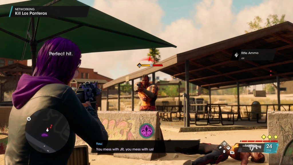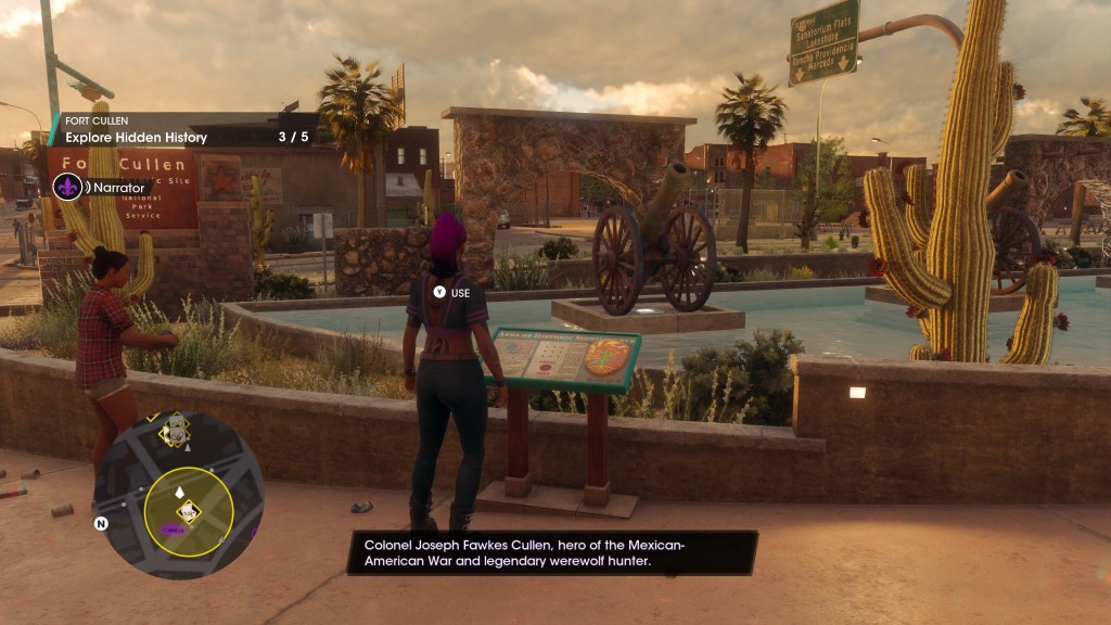 I suppose the LARP guns are kind of funny for a while. You can unlock these and use them at any point, pretending to shoot these clearly fake weapons at people, and everyone plays along with comically overacted death animations and dialog because apparently, everyone in Santo Ileso plays the game. Of course, you see all these “deaths” in the LARP missions and probably won’t care by the time you unlock the weapons for general use.