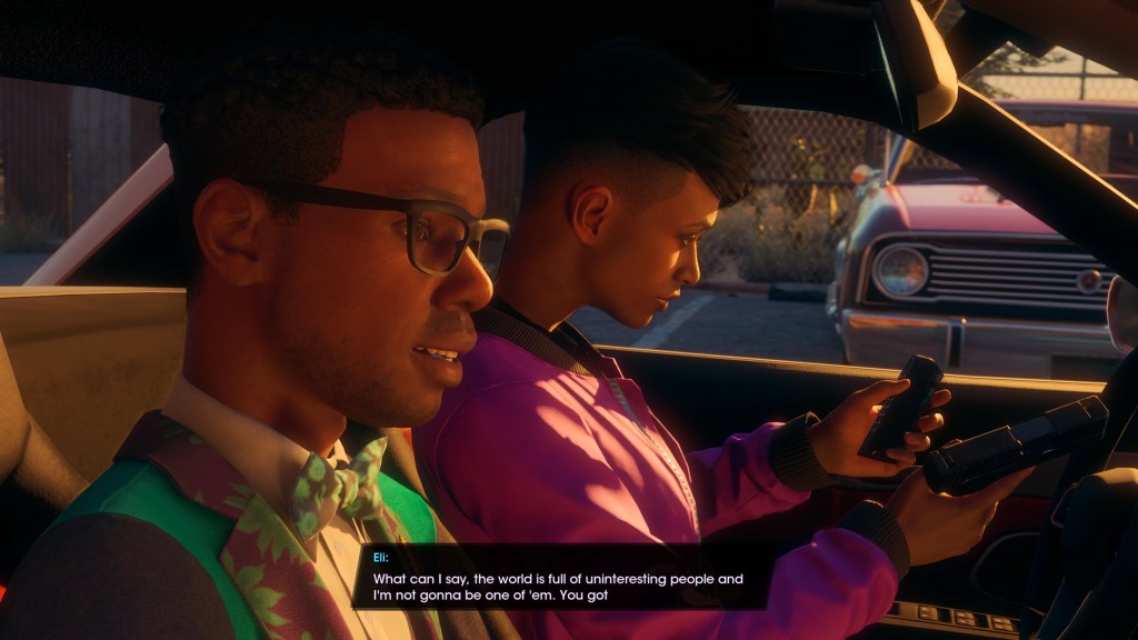 I feel like the game should’ve started with the player character moving to Santo Ileso (you could even keep the plot point of them joining Marshall and say they moved here because they got the job) and meeting the crew for the first time. It would not fix all the issues with the writing and I would still probably hate Eli with the burning passion of a thousand suns exploding into supernovas, but at least this approach would allow us to get to know these characters and give us time to maybe form some kind of attachment to them, rather than just having the game say “Hey, these are your friends, you should like them!” before we ever meet them. I do realize the plot we got is already the result of many rewrites (including several late additions that were meant to give us more reason to care about the cast) and extremely fraught development, and there was only so much that could be done.