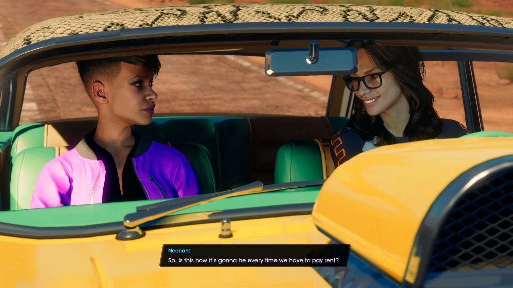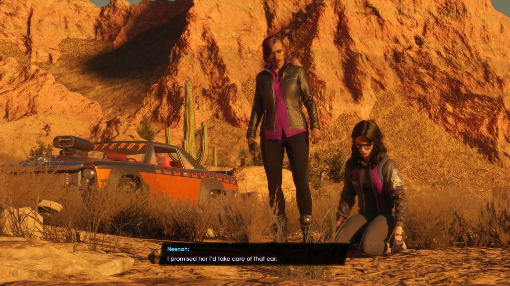Saints Row went through rewrite after rewrite during its troubled development, but even in its final form it gives us very little reason to care about the main cast. For the most part, these characters might as well be cut from the side of a cereal box. Neenah at least gets some backstory in-game as we learn why her project car is so important to her and why she reacts so strongly when it’s stolen and trashed by the Panteros.
