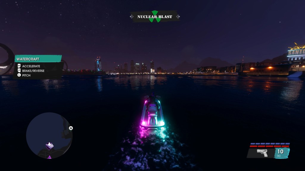 Much like the shooting, I could describe the driving as floaty and unsatisfying, and even using nitrous doesn’t feel as good as it should. Driving has never really been Saints Row‘s strong suit as it has always tended to feel too weightless for its own good, but it seems to have gone backwards here. Helicopters handle even worse, and having to do precision maneuvers in them is genuinely frustrating. Watercraft are used so rarely their controls don’t really matter that much.